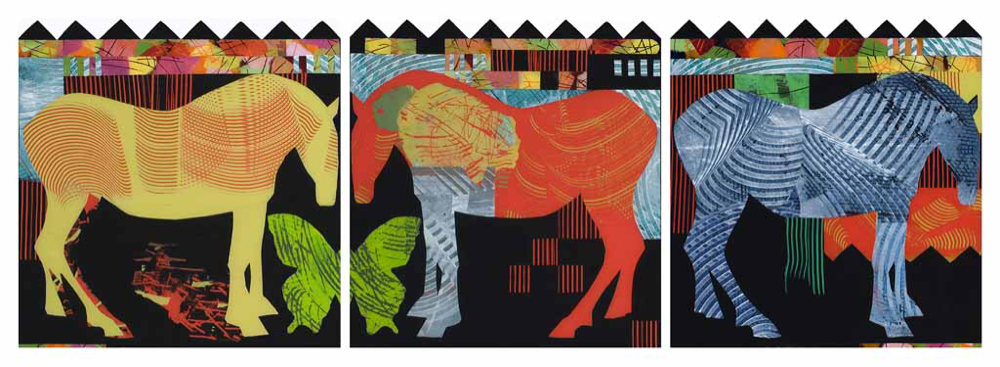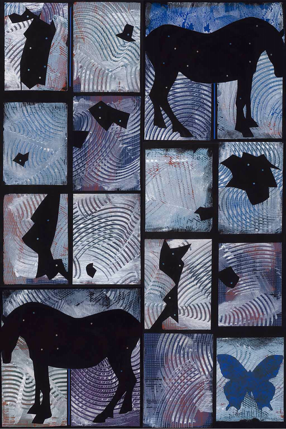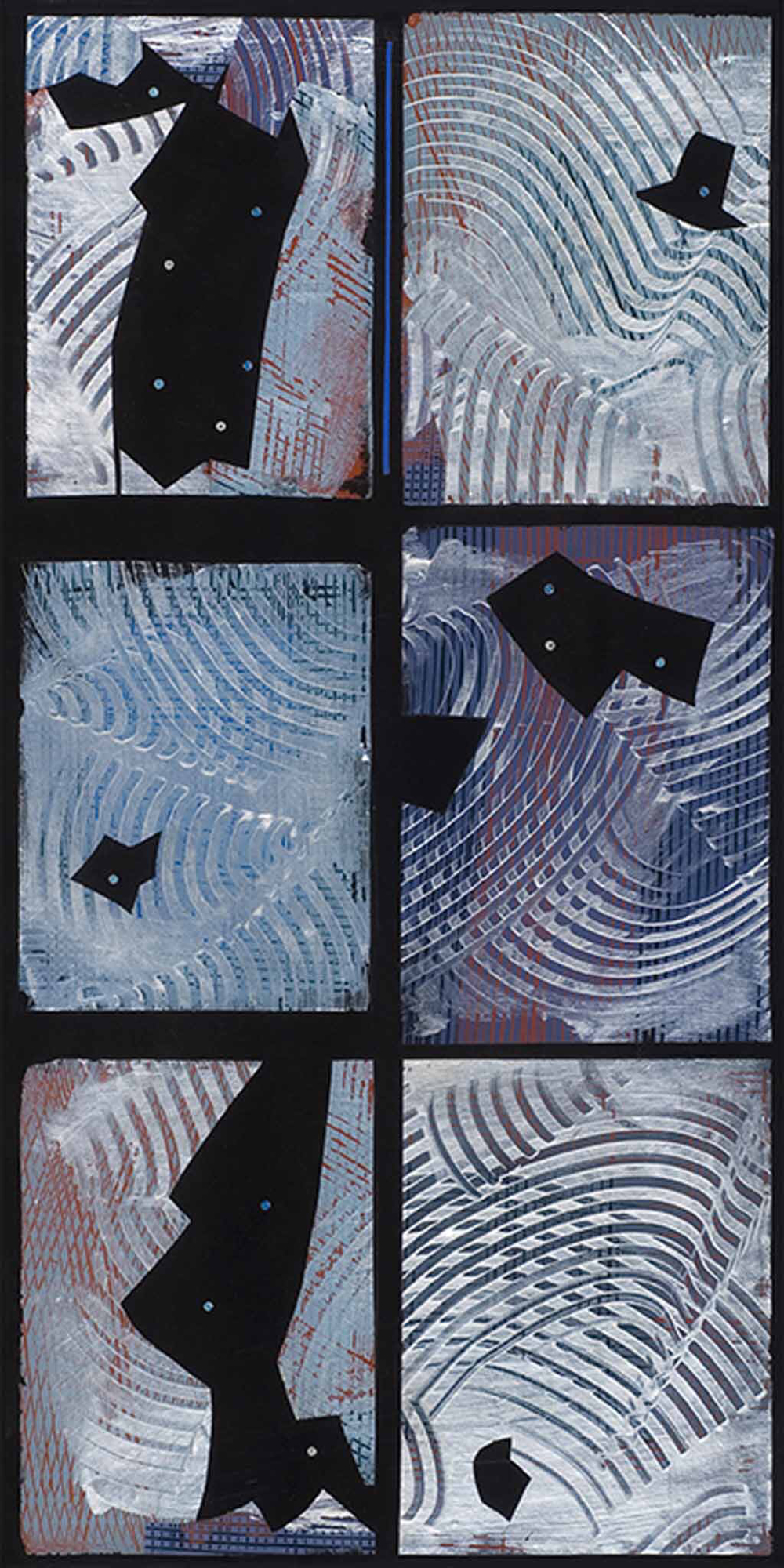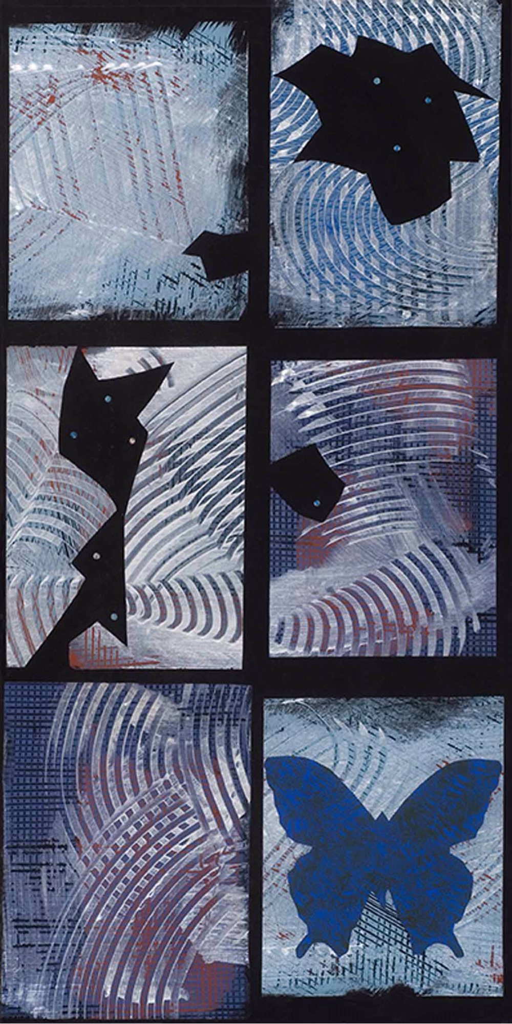 8- Ensemble aux gardiens stellaire polyptyque, 2009, pellicule d'acrylique et résine sur bois, 122 x 81cm ( 48''x 32'')