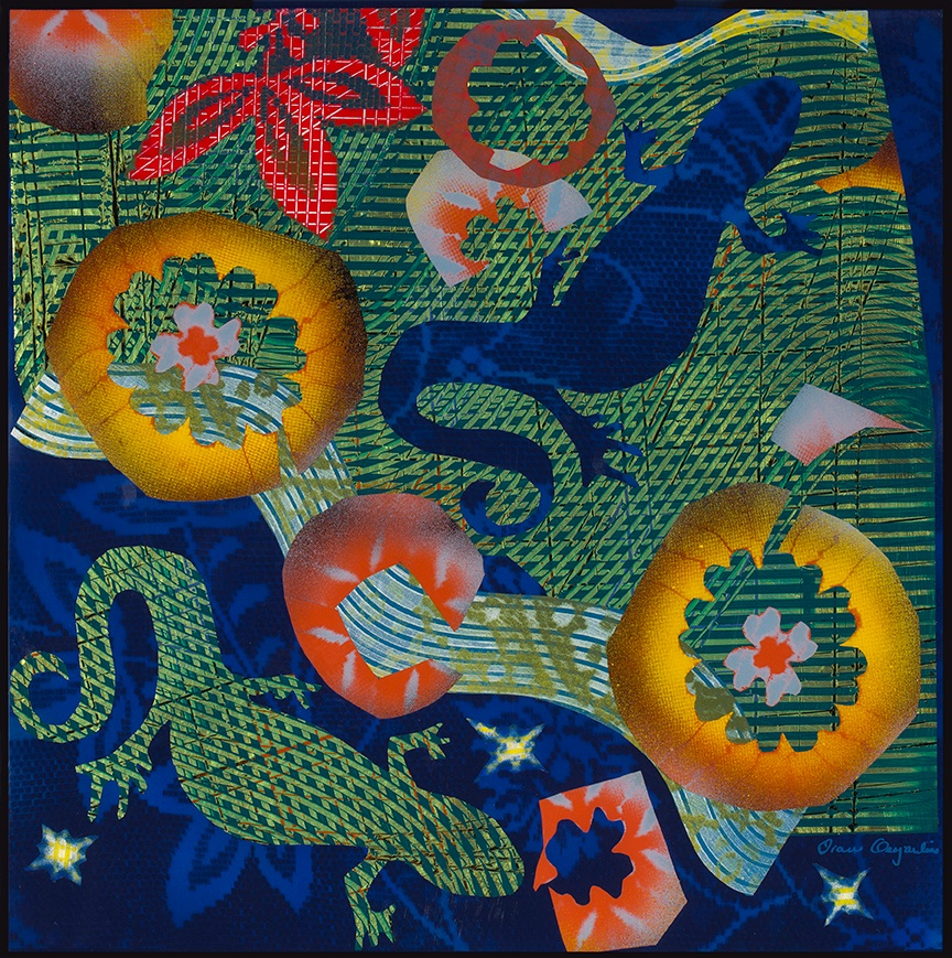 1- Le jeu de perles de verre, 2011, pellicule d'acrylique et résine sur bois, 61 x 61 cm (24''x 24'')