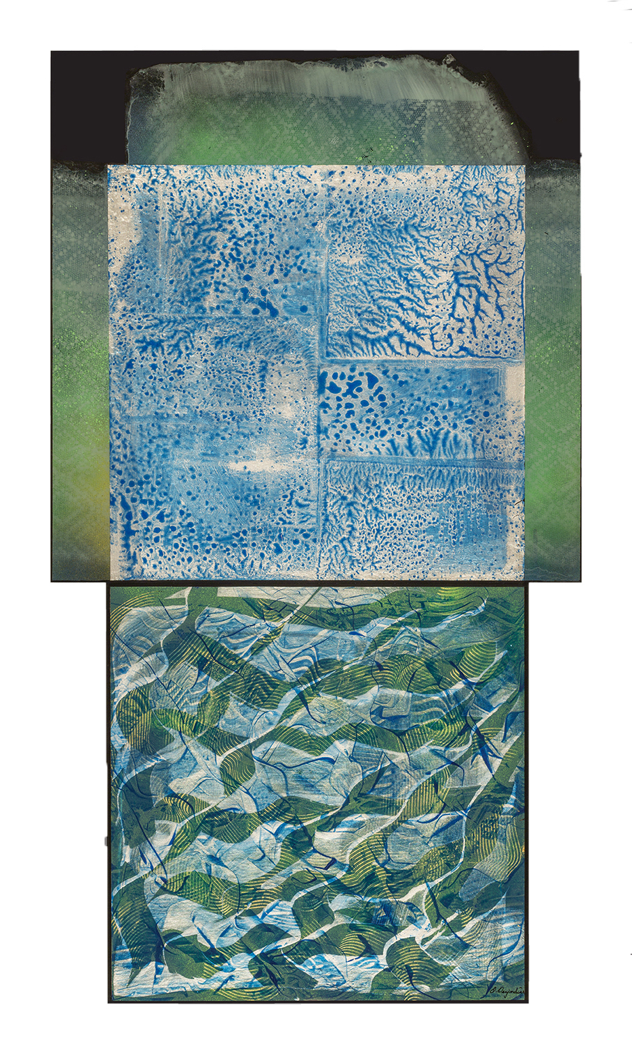1- Variations climatiques H2O, 2015, pellicule d'acrylique et résine sur bois, 51 x 51 cm et 41 x 41 cm, (20'' x 20'' et 16''x 16'')